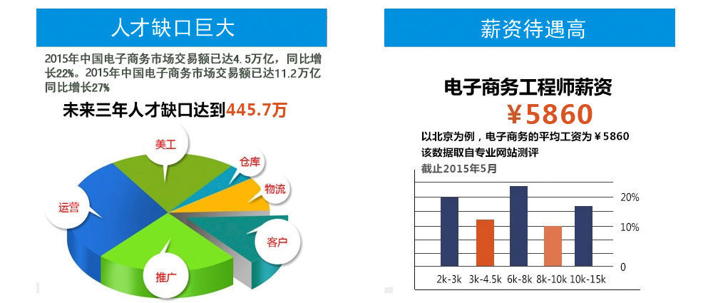 通过电子商务专业全面系统的学习,毕业后可从事网页美工、网店装修、网店运营、企业网站建设、网络营销与策 划师、网络推广员(免费推广、竞价推广、网盟推广、富媒体推广)、网站维护、网页动画设计师、图像合成与 处理、网站优化SEO、(微博、博客、微信)运营、信息系统维护员、项目经理等。